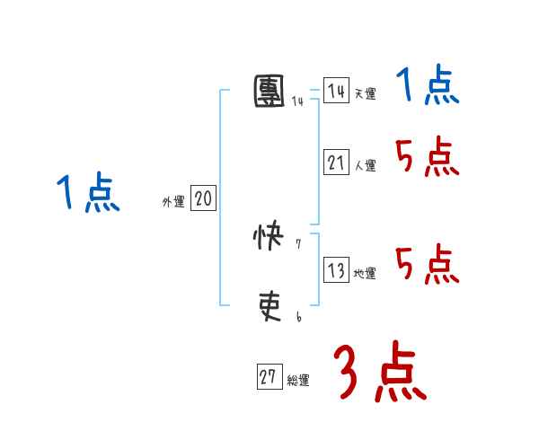 地運![]() | 團快吏さんの地運は13画の5つ星!才能に恵まれ人気がある。名声を手に入れる。円満な人生。 個性を表す基礎的な運勢です。性格形成や対人関係、行動力など家庭環境に影響されます。主に誕生してから20歳くらいまでの若年期の運勢を表します。 |