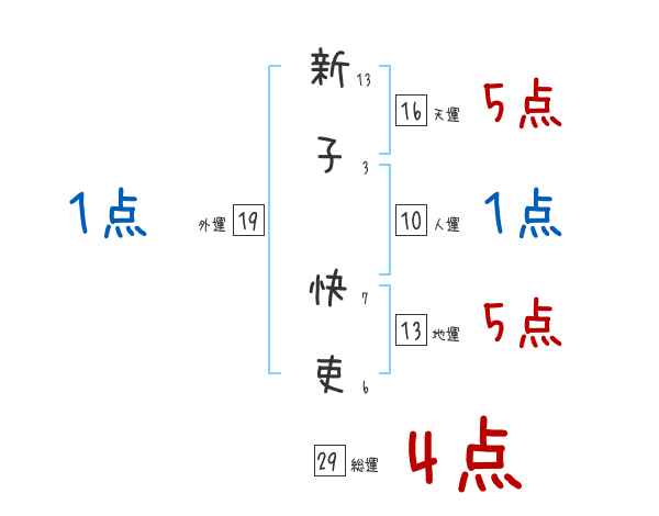 新子快吏さんの画数の鑑定結果