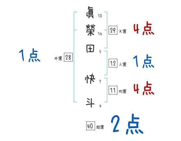 天運![]() | 眞榮田快斗さんの天運は29画の4つ星!完全主義で才能がある。厳格な心の持ち主。 家系が持つ宿命的な運勢を表します。祖先から受け継いだ苗字ですので自分の力が及びません。家柄を象徴します。 |