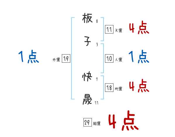 板子快晟さんの画数の鑑定結果