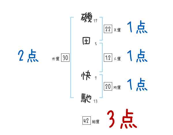 磯田快馳さんの画数の鑑定結果