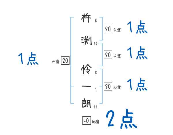 人運![]() | 杵渕怜一朗さんの人運は20画の1つ星!社交が苦手。人とは違った才能があり波乱万丈な人生かも。 性格や才能などを表す2番目に重要な運勢です。人間関係や協調性、社会的な成功に影響します。主に20歳から50歳ぐらいまでの中年期の運勢を表します。 |