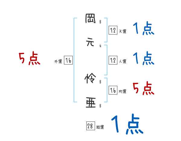 岡元怜亜さんの画数の鑑定結果