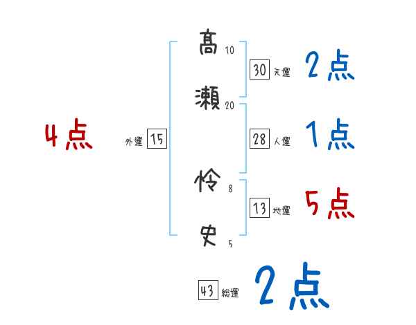 髙瀬怜史さんの画数の鑑定結果