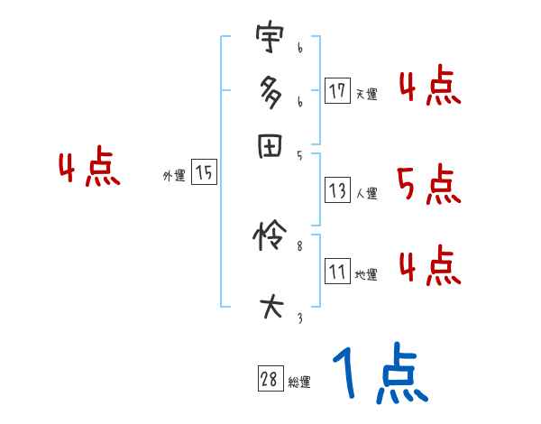 宇多田怜大さんの画数の鑑定結果