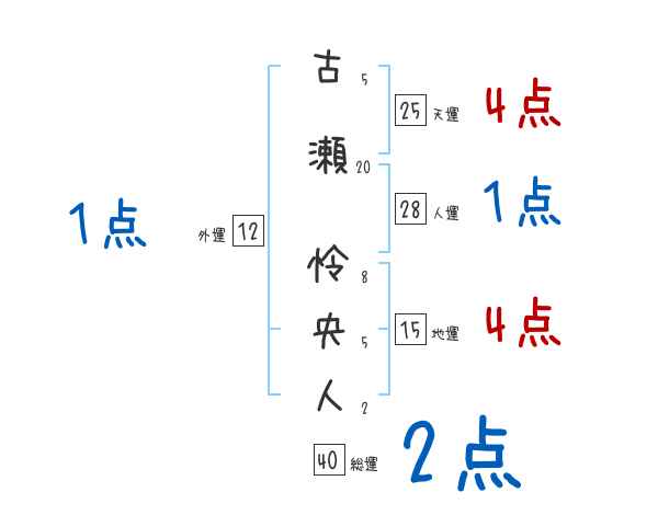 古瀬怜央人さんの画数の鑑定結果