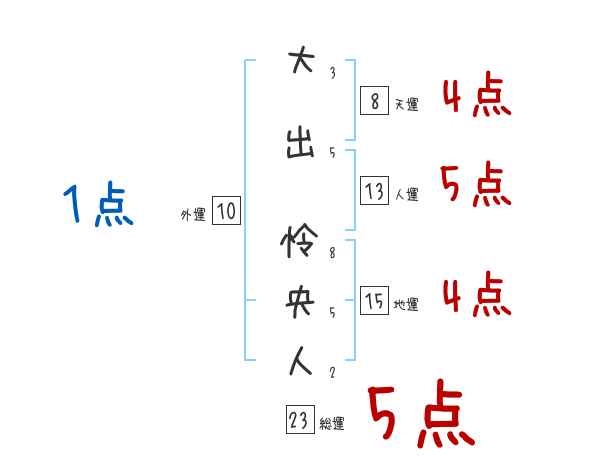 大出怜央人さんの画数の鑑定結果
