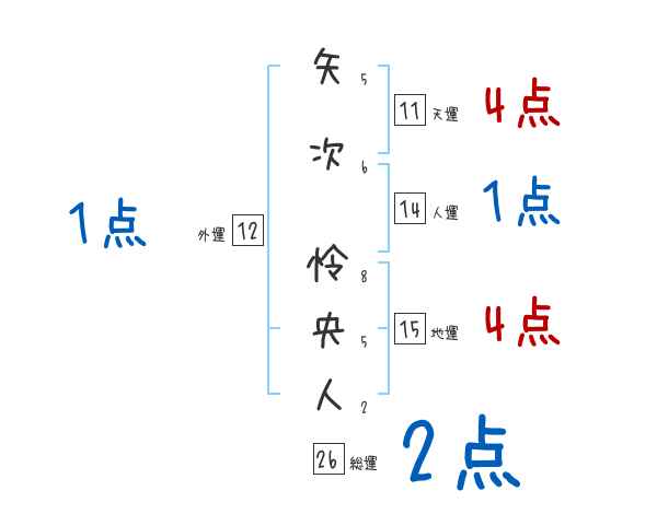 天運![]() | 矢次怜央人さんの天運は11画の4つ星!着実に富や地位を得る幸運な人生。 家系が持つ宿命的な運勢を表します。祖先から受け継いだ苗字ですので自分の力が及びません。家柄を象徴します。 |