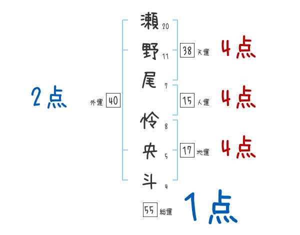 瀬野尾怜央斗さんの画数の鑑定結果