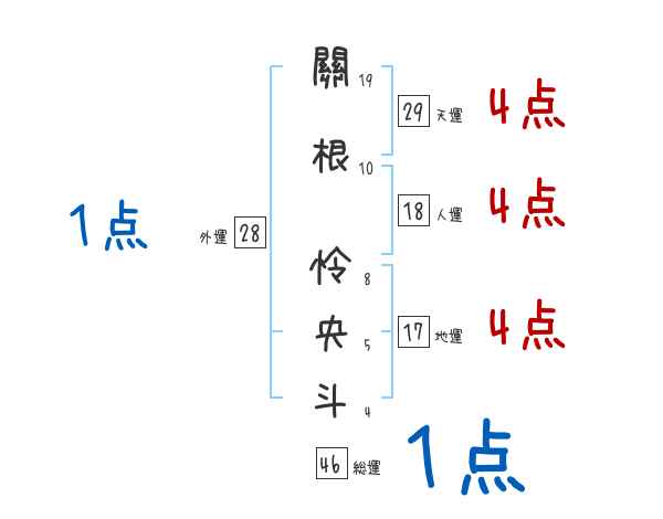 人運![]() | 關根怜央斗さんの人運は18画の4つ星!情熱的で剛気。忍耐力があり信頼される。 性格や才能などを表す2番目に重要な運勢です。人間関係や協調性、社会的な成功に影響します。主に20歳から50歳ぐらいまでの中年期の運勢を表します。 |