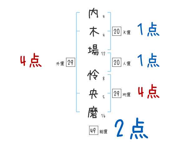 内木場怜央磨さんの画数の鑑定結果