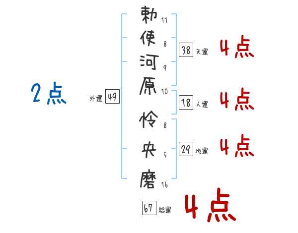 勅使河原怜央磨さんの外運は49画の2つ星