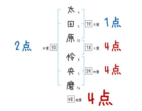 外運![]() | 太田原怜央磨さんの外運は30画の2つ星!浮き沈みの激しさに注意しましょう。 生活面を象徴する運勢です。外部から受ける影響力を表し、結婚運、家庭運や職場、環境への順応性を表します。 |