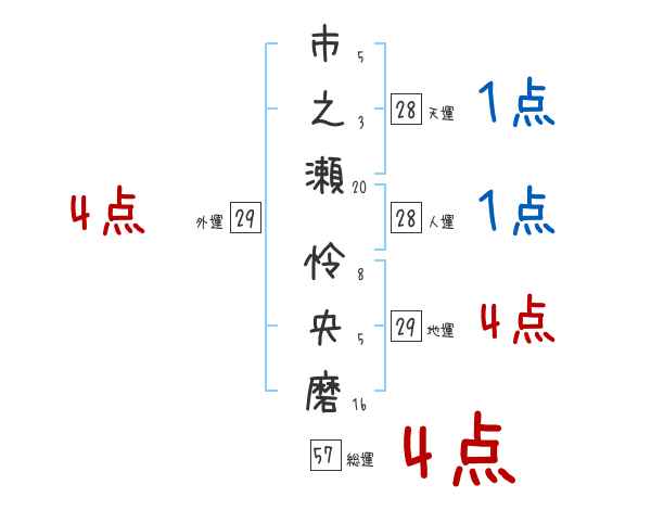 市之瀬怜央磨さんの画数の鑑定結果