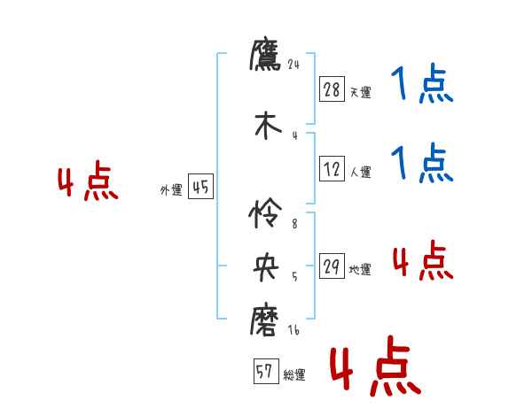 鷹木怜央磨さんの画数の鑑定結果