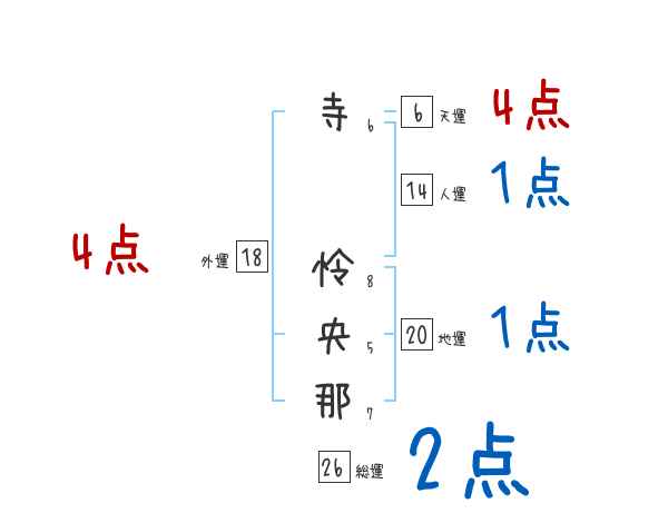 寺怜央那さんの画数の鑑定結果