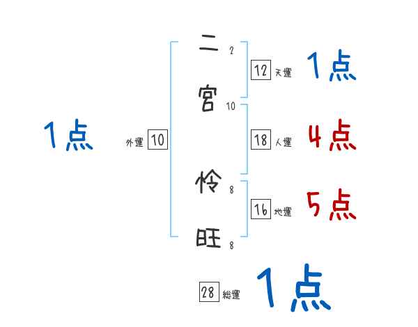 二宮怜旺さんの画数の鑑定結果
