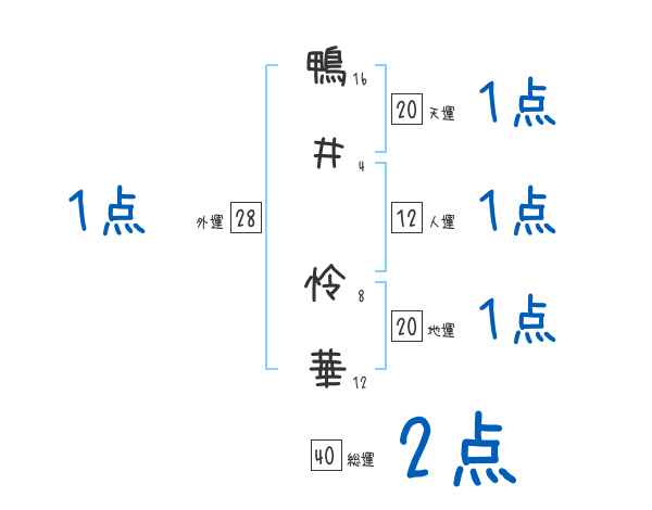外運![]() | 鴨井怜華さんの外運は28画の1つ星!家庭環境に注意。スポーツで活躍できる能力があるかも。 生活面を象徴する運勢です。外部から受ける影響力を表し、結婚運、家庭運や職場、環境への順応性を表します。 |