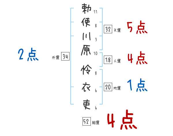 天運![]() | 勅使川原怜衣吏さんの天運は32画の5つ星!柔軟性があり成功する。チャンスが多く金運が良い。 家系が持つ宿命的な運勢を表します。祖先から受け継いだ苗字ですので自分の力が及びません。家柄を象徴します。 |