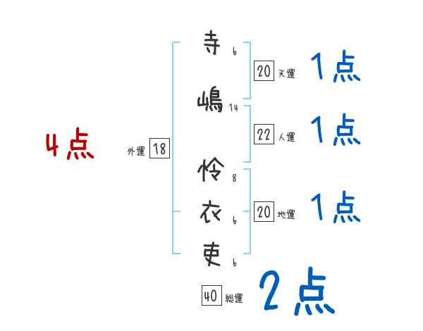 寺嶋怜衣吏さんの外運は18画の4つ星