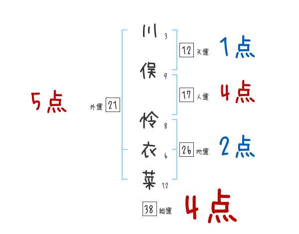 川俣怜衣菜さんの画数の鑑定結果