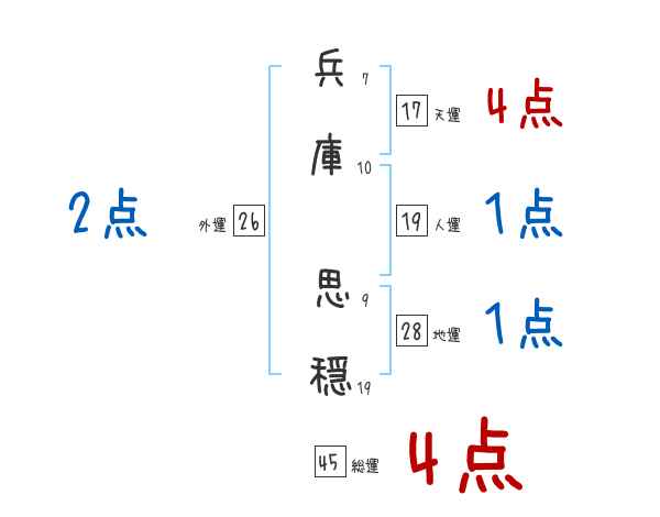 兵庫思穏さんの画数の鑑定結果