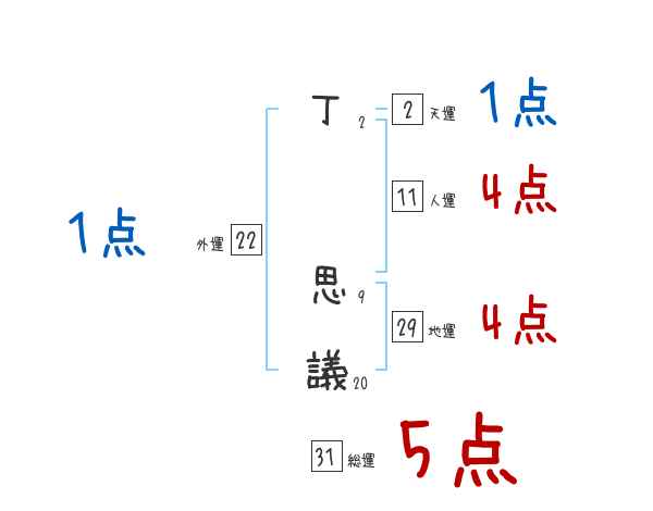 外運![]() | 丁思議さんの外運は22画の1つ星!努力することが苦手ないっぽう手先が器用。芸術性にも優れる。 生活面を象徴する運勢です。外部から受ける影響力を表し、結婚運、家庭運や職場、環境への順応性を表します。 |