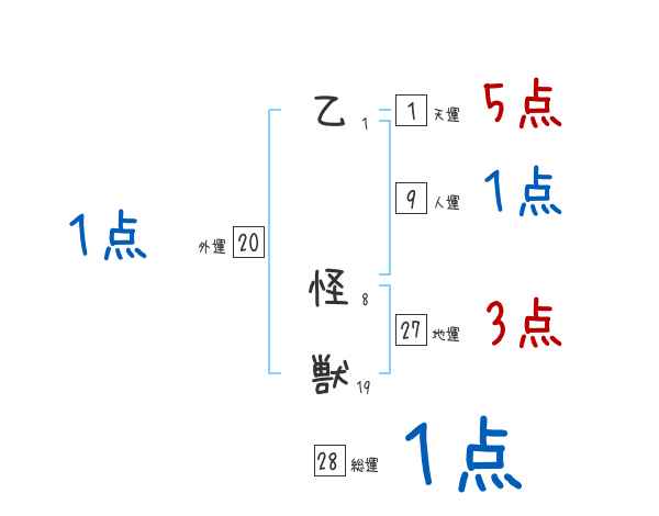 乙怪獣さんの画数の鑑定結果