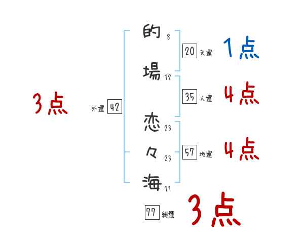 人運![]() | 的場恋々海さんの人運は35画の4つ星!温厚な性格で感受性が高い。穏和な性格で人望が厚い。 性格や才能などを表す2番目に重要な運勢です。人間関係や協調性、社会的な成功に影響します。主に20歳から50歳ぐらいまでの中年期の運勢を表します。 |