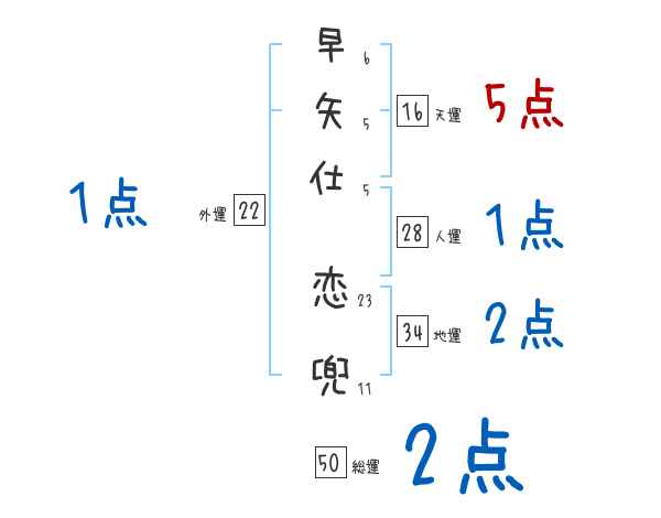 早矢仕恋兜さんの画数の鑑定結果