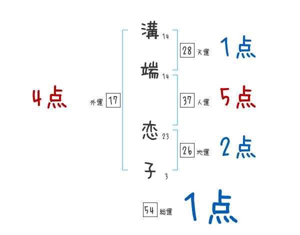 天運![]() | 溝端恋子さんの天運は28画の1つ星!家庭環境に注意。スポーツで活躍できる能力があるかも。 家系が持つ宿命的な運勢を表します。祖先から受け継いだ苗字ですので自分の力が及びません。家柄を象徴します。 |