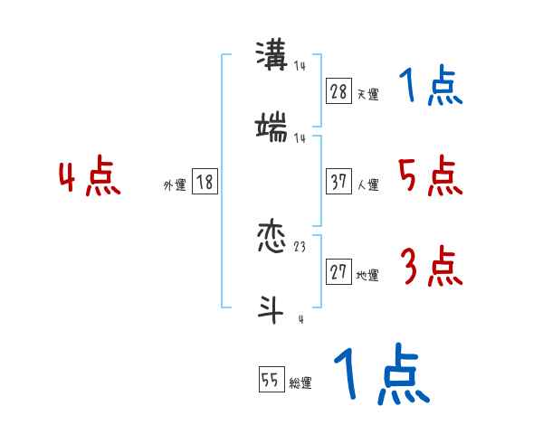 天運![]() | 溝端恋斗さんの天運は28画の1つ星!家庭環境に注意。スポーツで活躍できる能力があるかも。 家系が持つ宿命的な運勢を表します。祖先から受け継いだ苗字ですので自分の力が及びません。家柄を象徴します。 |
