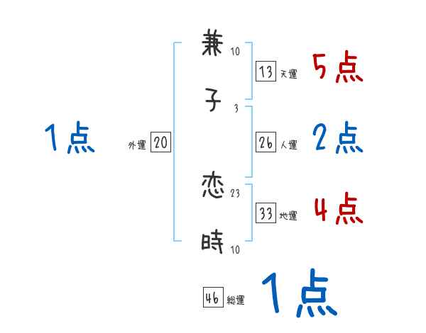 兼子恋時さんの画数の鑑定結果