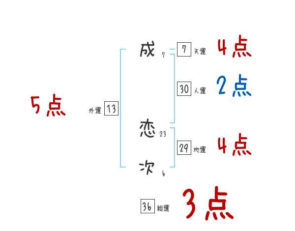 成恋次さんの画数の鑑定結果
