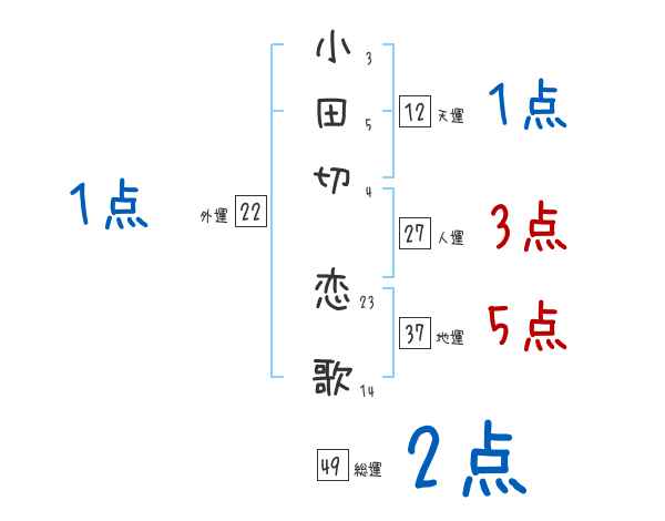 天運![]() | 小田切恋歌さんの天運は12画の1つ星!簡単な失敗で諦めてしまいやすいかも。着実に行動すると良いでしょう。 家系が持つ宿命的な運勢を表します。祖先から受け継いだ苗字ですので自分の力が及びません。家柄を象徴します。 |