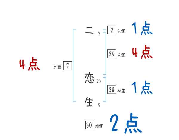 二恋生さんの画数の鑑定結果