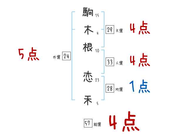 駒木根恋禾さんの画数の鑑定結果