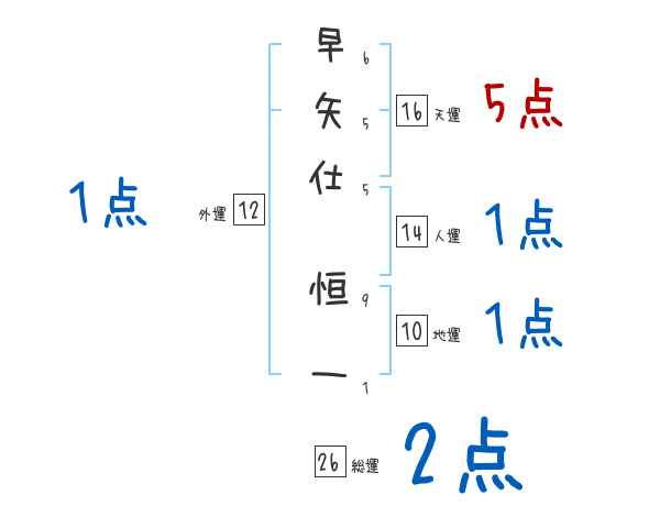 天運![]() | 早矢仕恒一さんの天運は16画の5つ星!人望が厚く大きく発展する。逆転成功が見える。 家系が持つ宿命的な運勢を表します。祖先から受け継いだ苗字ですので自分の力が及びません。家柄を象徴します。 |
