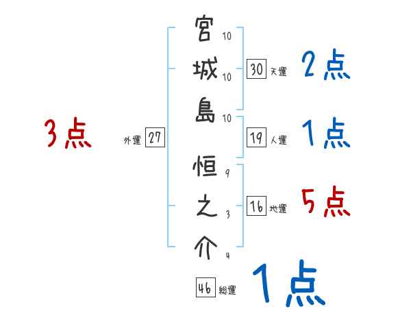 宮城島恒之介さんの画数の鑑定結果