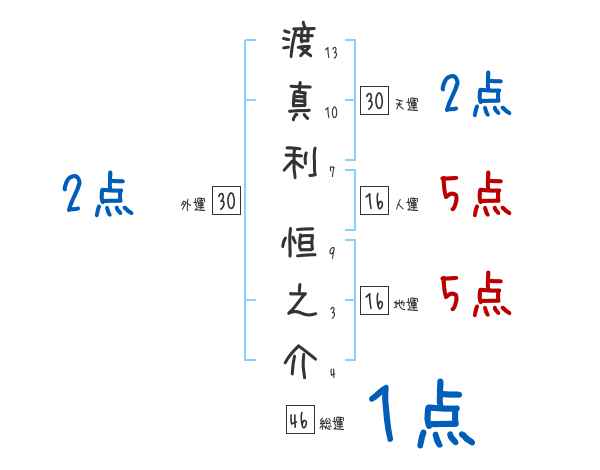 渡真利恒之介さんの画数の鑑定結果
