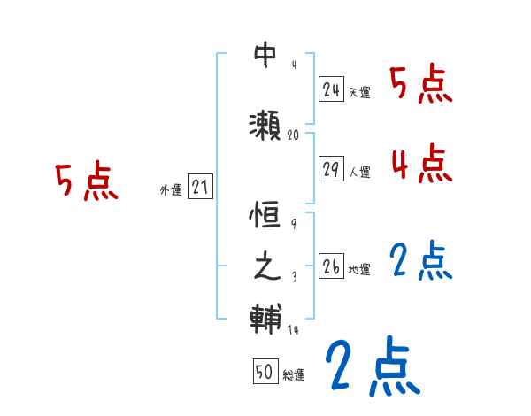 中瀬恒之輔さんの画数の鑑定結果
