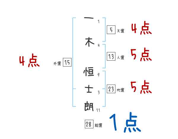 一木恒士朗さんの画数の鑑定結果