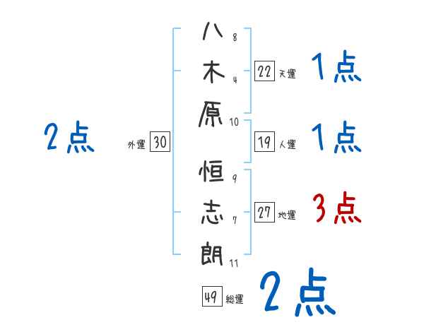 八木原恒志朗さんの画数の鑑定結果