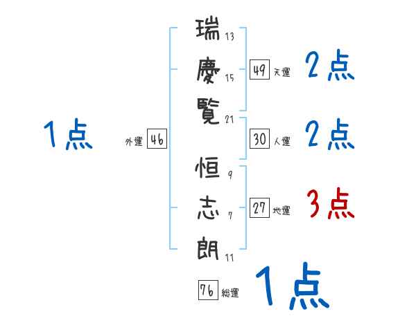 瑞慶覧恒志朗さんの画数の鑑定結果