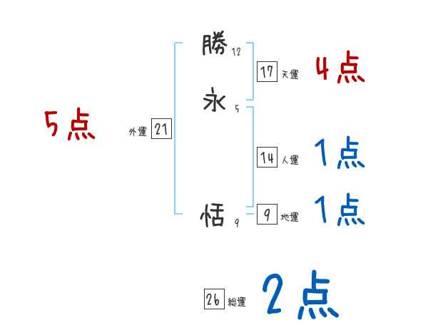 勝永恬さんの画数の鑑定結果