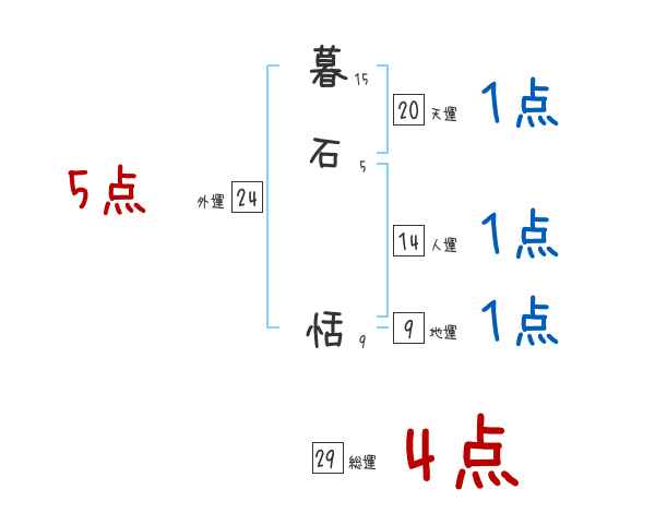 暮石恬さんの画数の鑑定結果