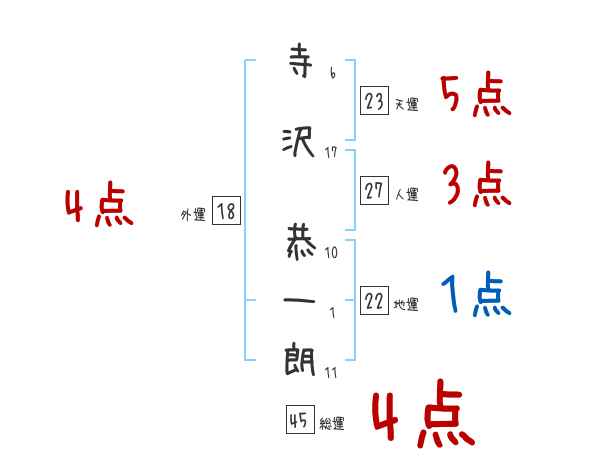寺沢恭一朗さんの画数の鑑定結果