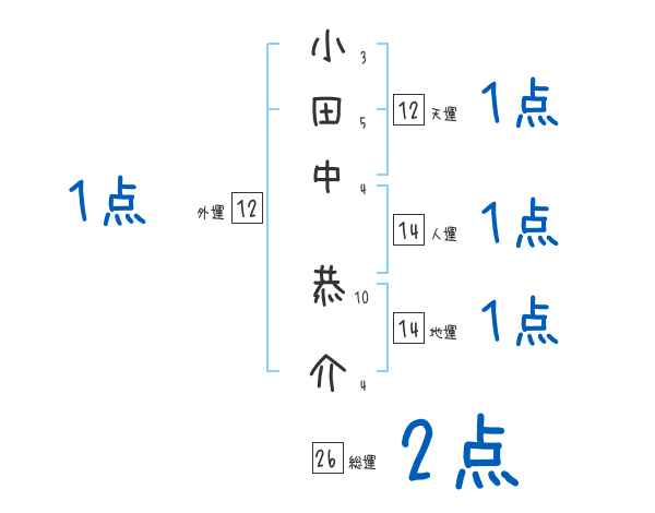 小田中恭介さんの画数の鑑定結果