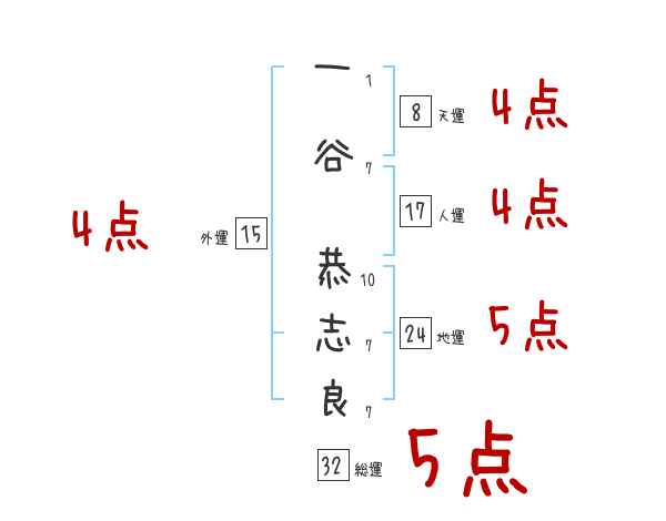 総運![]() | 一谷恭志良さんの総運は32画の5つ星!柔軟性があり成功する。チャンスが多く金運が良い。 あなたの人生を表す1番重要な運勢です。生涯を通じて影響する総合運となり、主に50歳以降の晩年期に影響を及ぼします。 |