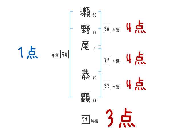 瀬野尾恭顕さんの画数の鑑定結果